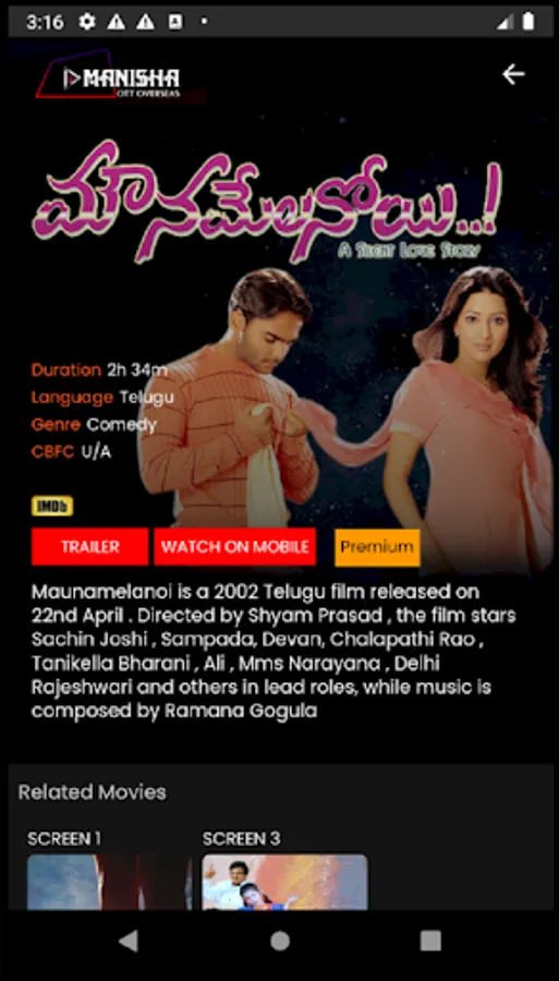 Manisha is a OTT Video Streaming Platform that allow viewers to watch different Movies in Android Mobiles and Android TV.