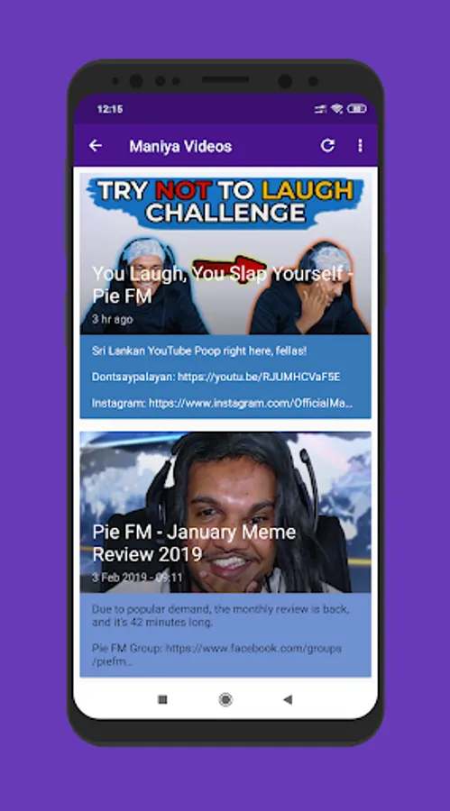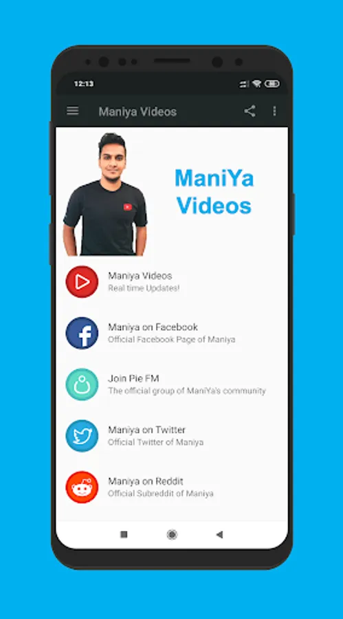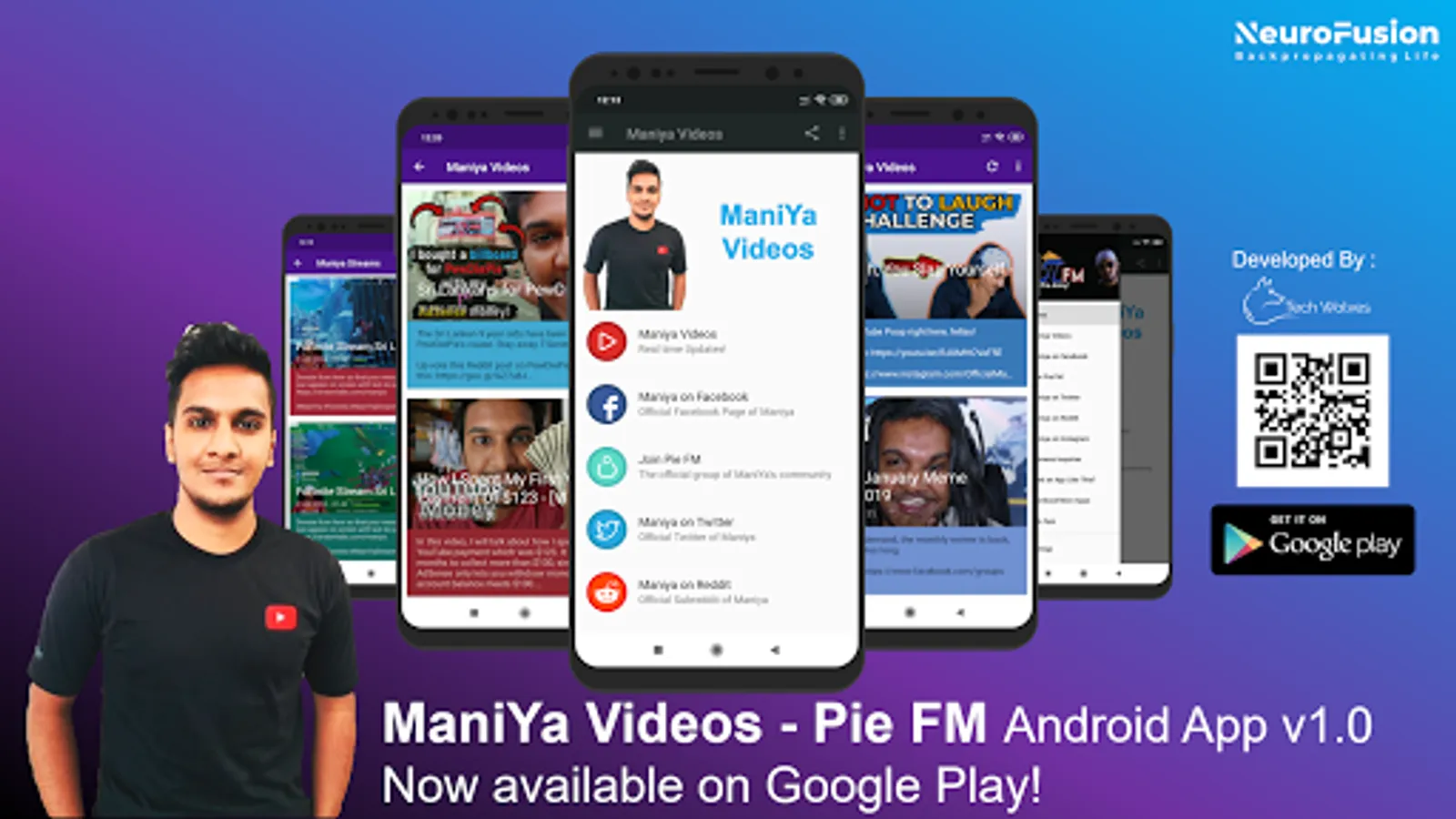 This is the Official Android App of Maniya - Pie FM developed by TechWolves on behalf of the amazing work done by Maniya! All the contents of this app, including videos, Scripts, Maniya Logo, Pie FM logo, fan pages are owned by Maniya himself. The App doesn't host anything itself. The Video feed is generated under YouTube Public Domain API v3 in real time.. Please share the app with your friends and family and help Maniya to create awesome contents!