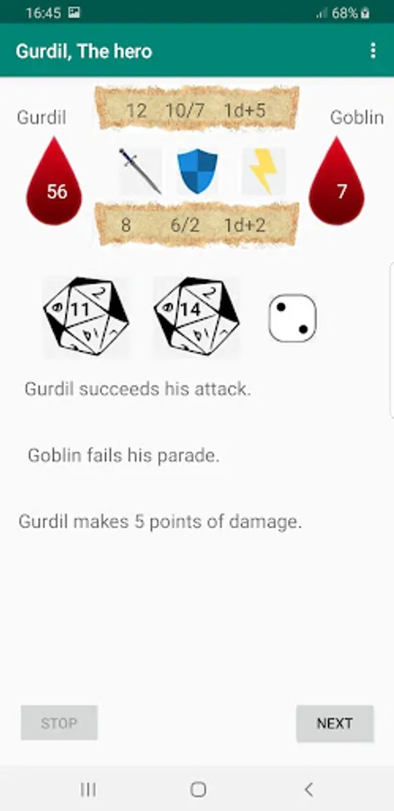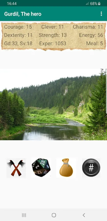 This app allows you to manage your characteristics (Strength, Charisma, ...), your equipment, roll dice, attempt trials, fight monsters described in books.