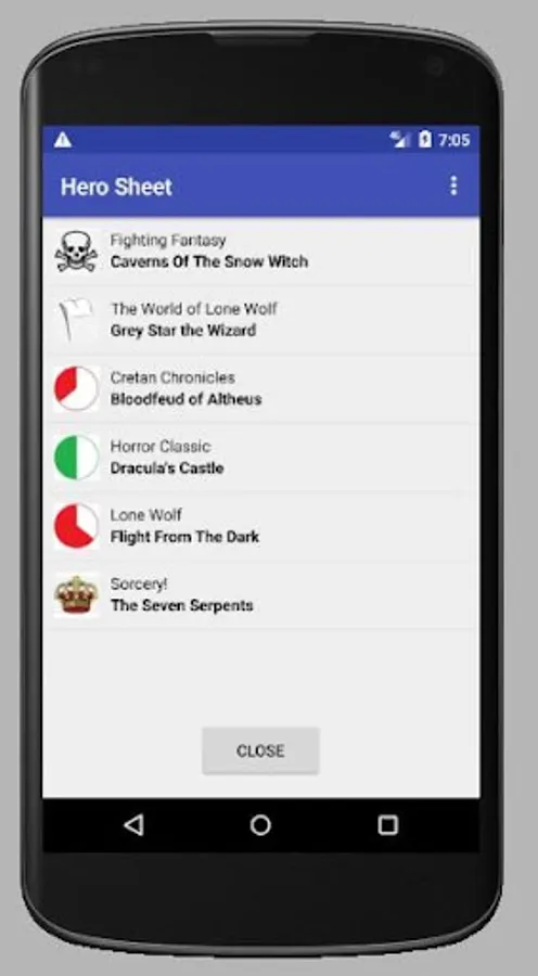 For readers of Fighting Fantasy Books, save the data of your heroes while reading one of the serie Cretan Chronicles, Fire*Wolf, Horror, Forbidden Gates, Lone Wolf, Sherlock Holmes, Sorcery!, The Way of the Tiger, The World of Lone Wolf or one of the 60 books adapted of Fighting Fantasy.