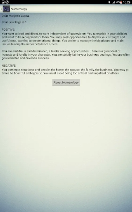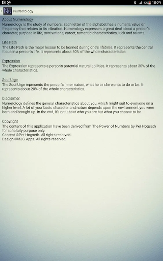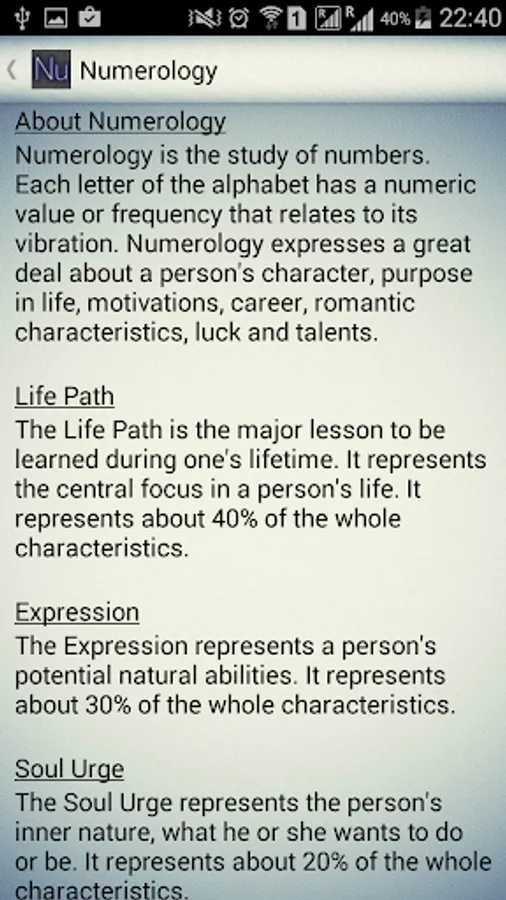 Numerology is the study of numbers. Each letter of the alphabet has a numeric value or frequency that relates to its vibration. Numerology expresses a great deal about a person's character, purpose in life, motivations, career, romantic characteristics, luck and talents.