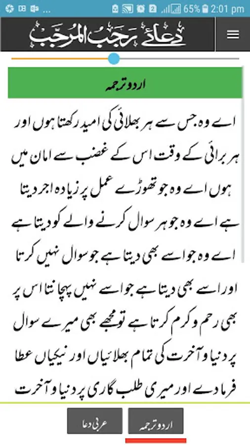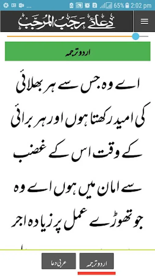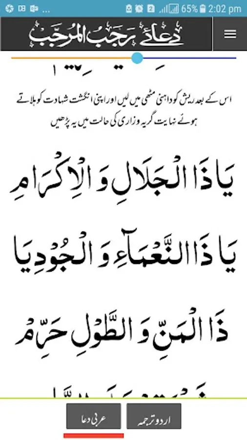 This application has a unique features of using Arabic & Urdu Unicode Custom Fonts that enable app more Beautiful. Reader can Increase / Decrease Font Size of Arabic Dua and its Urdu Translation as per his choice. Zoom Text as large as large user wants,