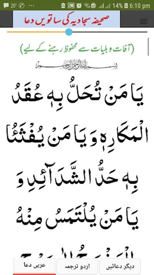 7th Dua of Saheefa Sajadia read during difficulties