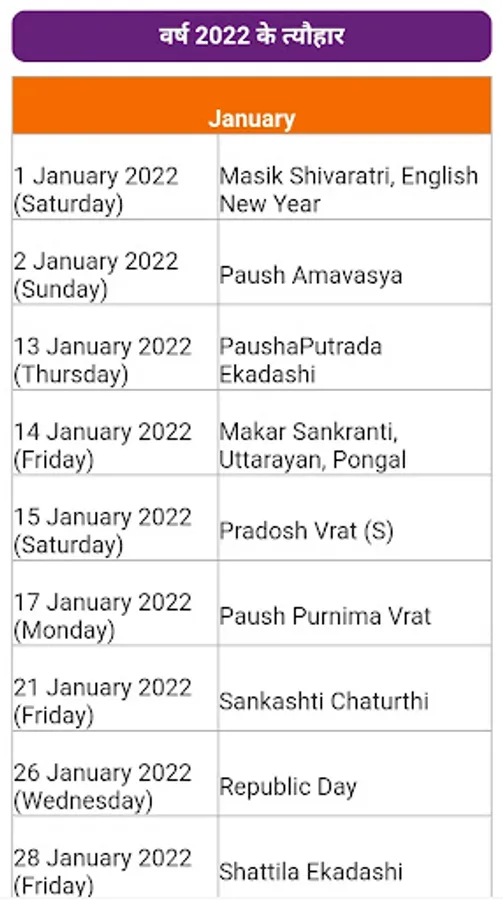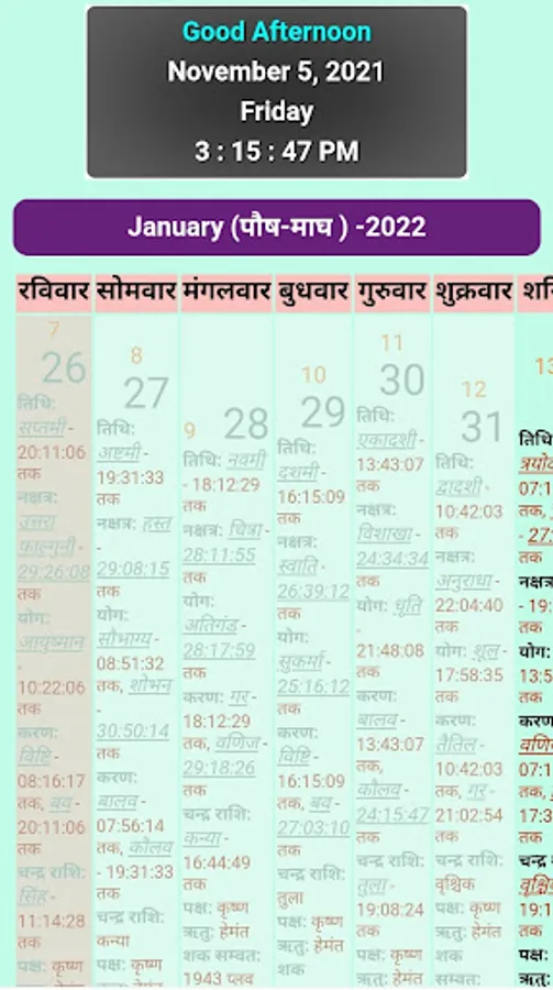 वर्ष 2022 का पंचांग | 2022 - Panchang is fully offline Application