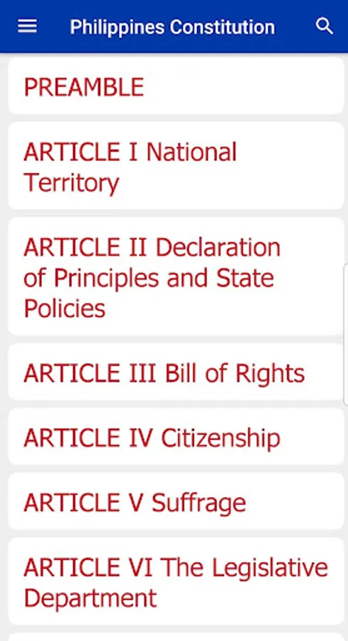 The Constitution of the Philippines (Filipino: Saligang Batas ng Pilipinas) is the constitution or supreme law of the Republic of the Philippines. Its final draft was completed by the Constitutional Commission on October 12, 1986, and was ratified by a nationwide plebiscite on February 2, 1987. The best app every Filipino citizen should have on their smartphones and tablets. It works offline so you can read the constitution anytime and anywhere.