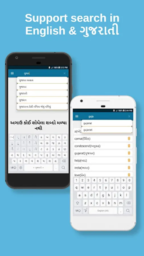 This dictionary Gujarati and English / Gujarati Dictionary ultimate are available with English to Gujarati Meanings and Gujarati to English Meanings.