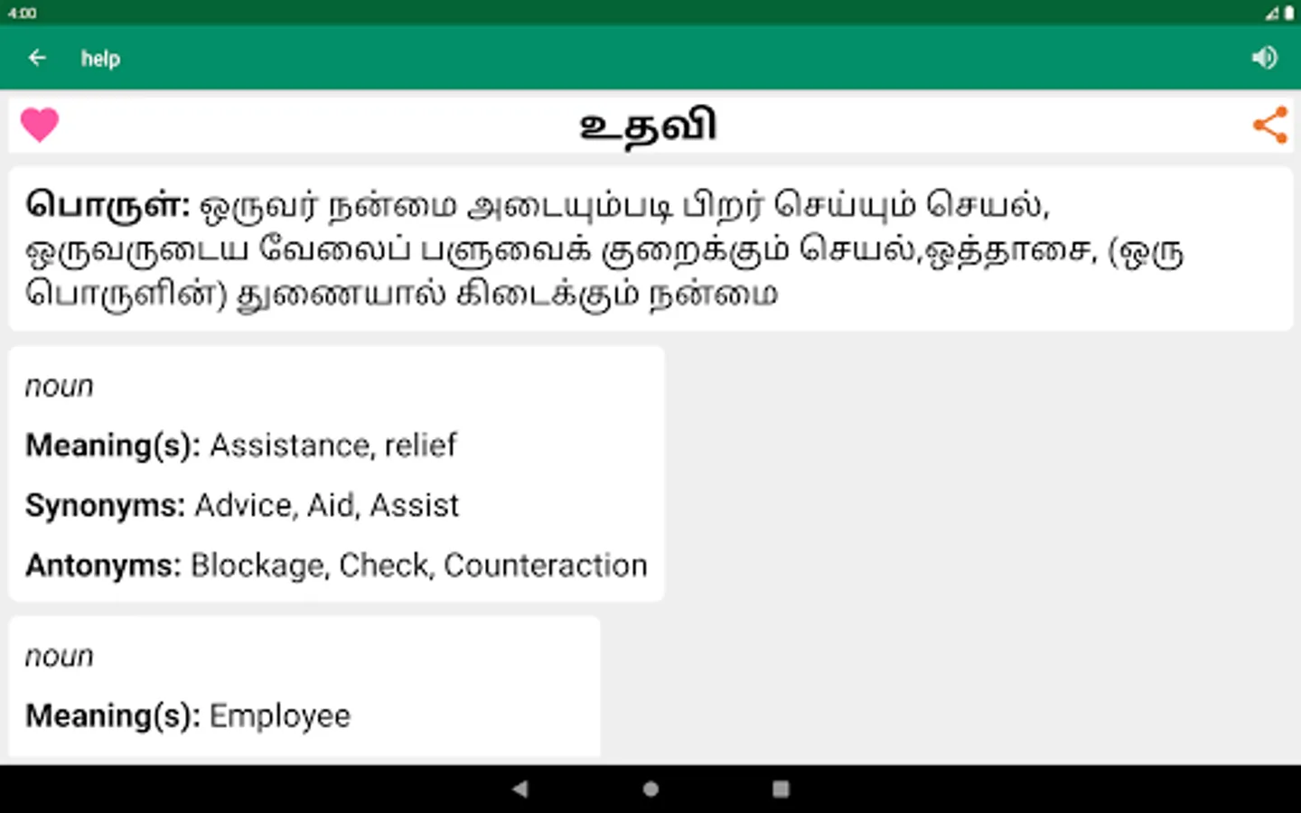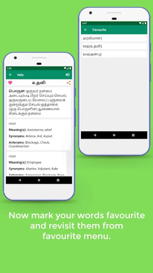 Tamil dictionary app gives Tamil to English and English to Tamil meanings, synonyms, antonyms with 200000+ words.