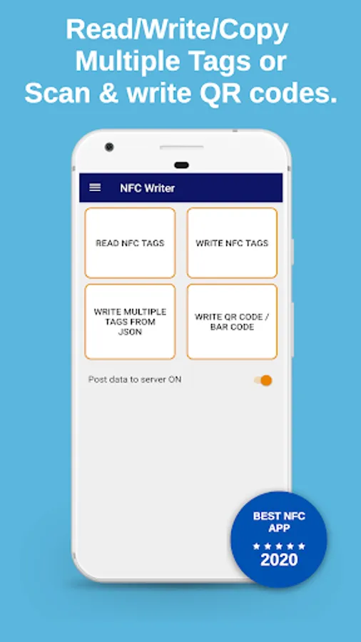 - Scan a QR code or Bar code, search a product, open a website or write a scanned QR code as an NFC tag