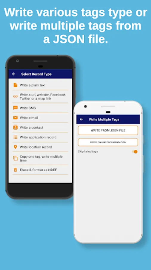 Now, you can write multiple tags of Text or URL type using a JSON file. Refer documentation to learn more.