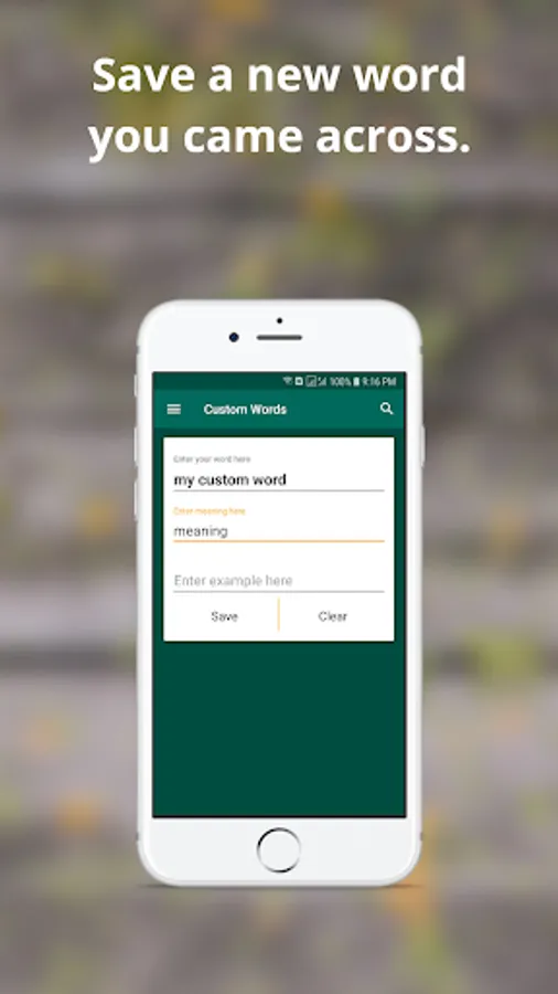 Vocabulary Builder app's WORD OF THE DAY feature provides you with an English Word every day so you learn a new English word every single day.