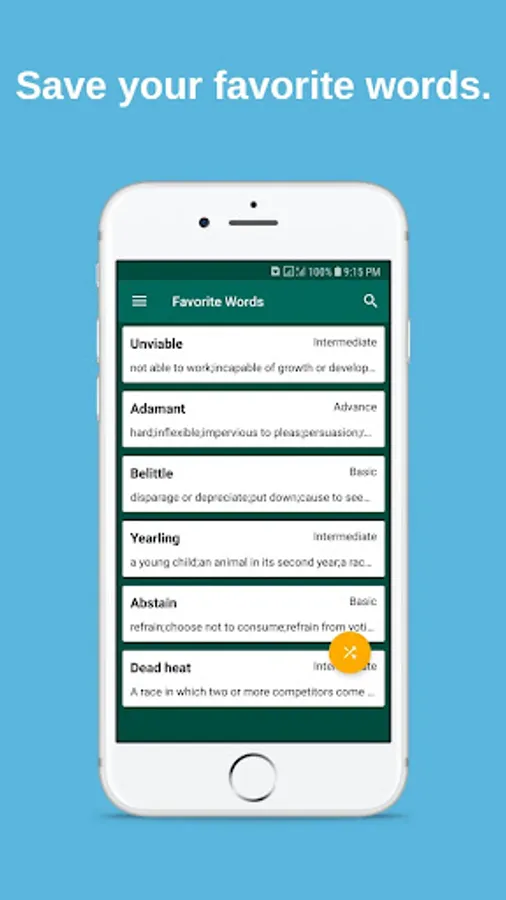 Mark any word as your favorite word to quickly view it later.