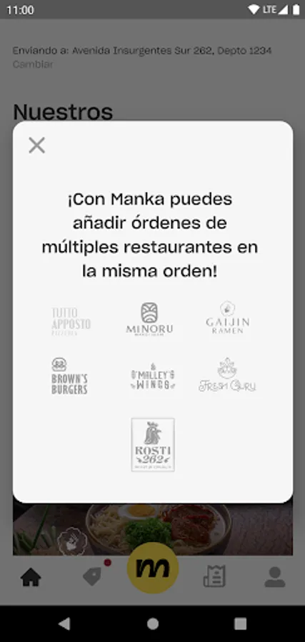 Our App will allow you to order from any of our restaurants, separately or in combined orders and thus enjoy our expert kitchens. When you are in a group, it will no longer be necessary to have to negotiate with your friends about what to eat. The Manka App allows you to order hamburgers from Brown's Burgers, pizzas from Tutto Apposto, ramen from Gaijin Ramen or sushi from Minoru among many others, all at the same time, efficiently and without intermediaries.