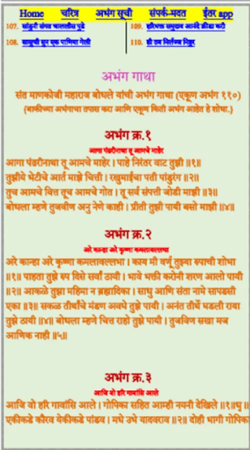 Sant Mankoji Bodhle's Abhangs are 110 Abhangs