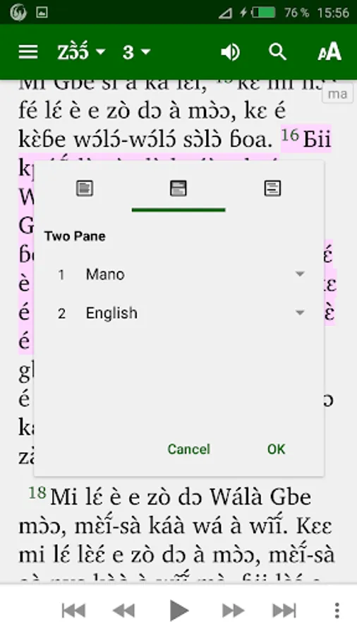 - Verse by verse Pane to see one Mano verse followed by its English equivalent.