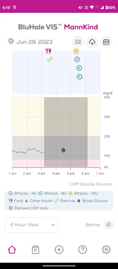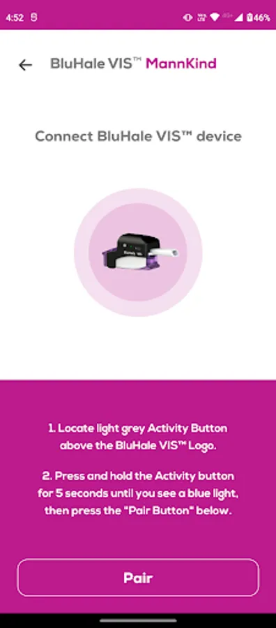 BluHale VIS™ is a wireless device and mobile app system that works with the Afrezza® inhaler to record dosing and other diabetes management information (such as CGM, meal and exercise). The device attaches to an Afrezza® Inhaler and transmits dosing information to a smartphone. There, it is displayed in the BluHale VIS™ mobile app alongside a user's linked CGM, and manually entered information. This information can be shared with a physician or care team via PDF report and/or CSV file.