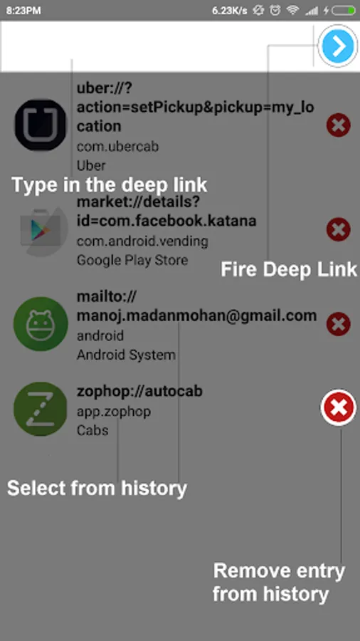 You can even type deep links directly from the web app, on your laptop/desktop itself, to instantly fire deep links on your phone. No wires, no ADB, nothing!