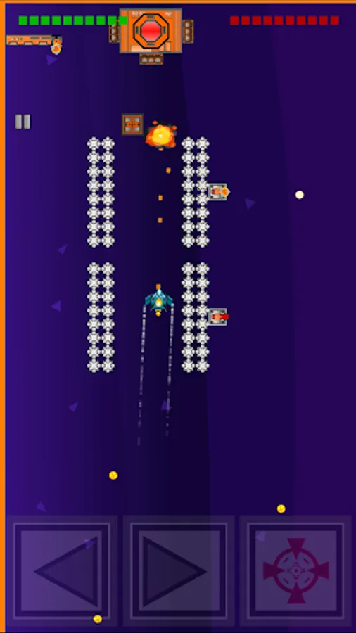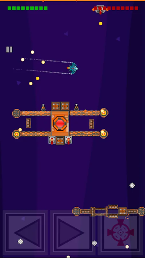 Tactical space shooter. Your mission is to destroy enemy base on every level. How you’re going to do that - completely up to you. The pilot can destroy all enemy turrets first or you can aim directly at the base hoping that you will shoot 10 accurate shots until your ship is destroyed