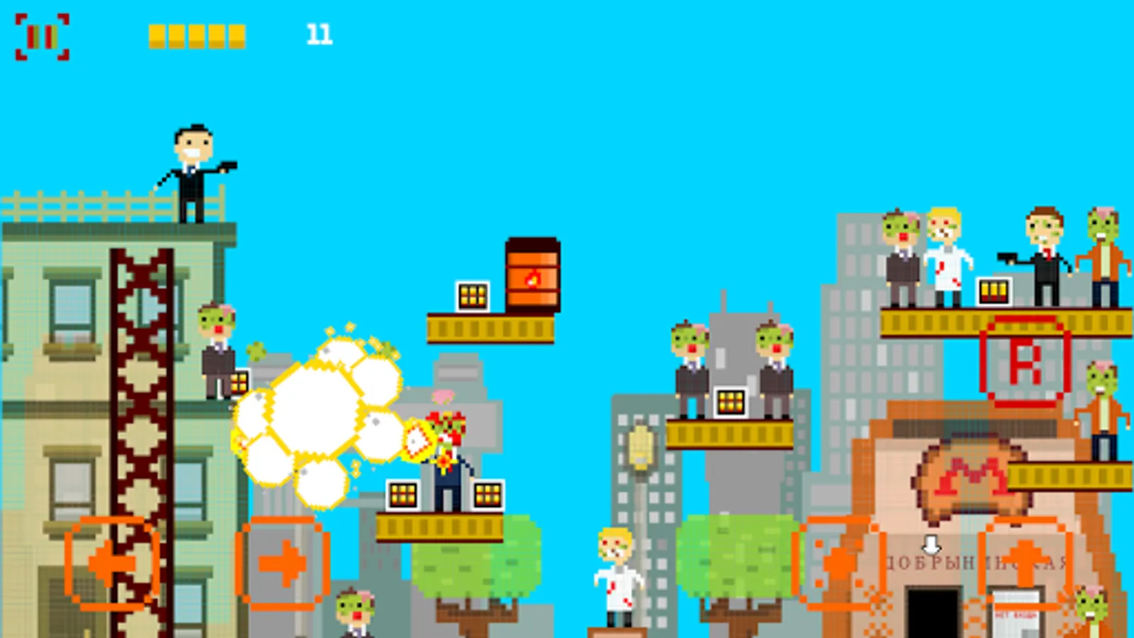 Join Stan in his adventure in Moscow (Russia) where he tries to find out who is responsible for the terrible virus outbreak. Run, jump, shoot zombies and all that stuff, you know. As simple as that. All Moscow sights and places are not properly drawn because I'm not very good at drawing. Except for the metro train. It turned out to be a spot on