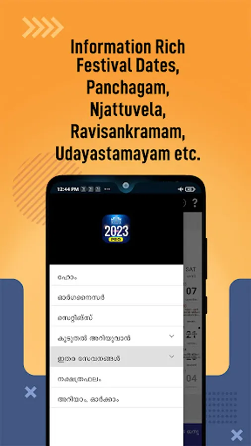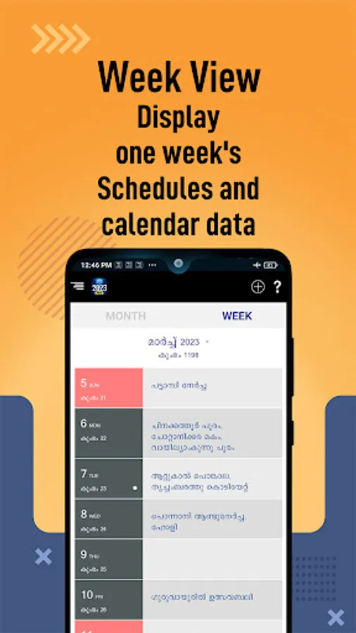 Calendar 2023 by Malayala Manorama. Malayala Manorama Calendar 2023 app, which has the English Calendar on the main display, also shows Malayalam calendar, Shakavarsham and Hijra calendar.Apart from supplying all the information like a paper calendar, the app lets you use it as a mobile organiser. It allows users to switch between two editions, Travancore and Malabar calendars, inside the same app. The app is in Malayalam.