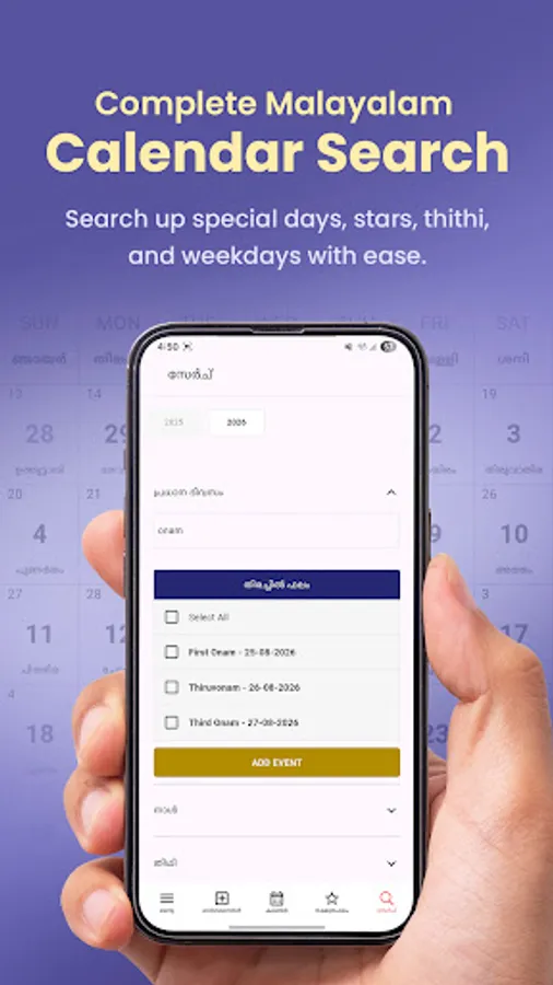 Malayalam Calendar Search – Search for special days, stars, thidhi, and weekdays