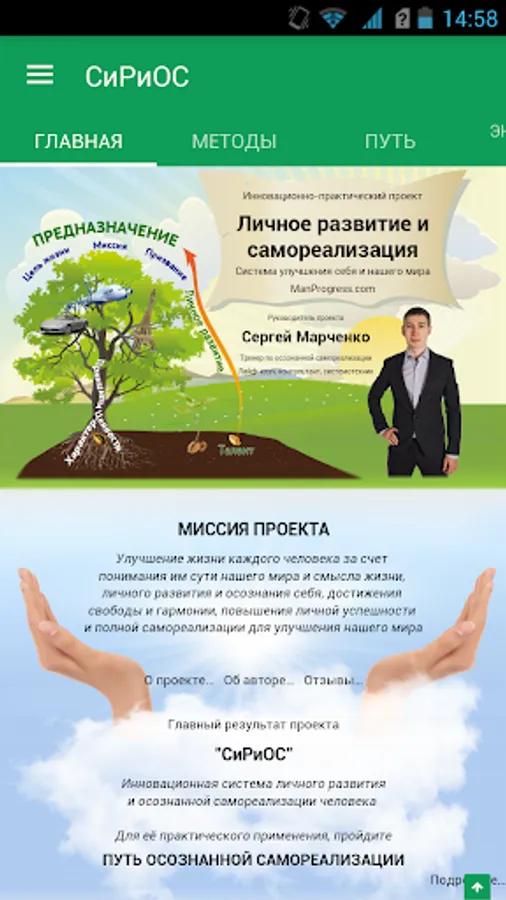 "My mission - to be a competent, professional wisdom, helping people develop self-realization, to become better, stronger, freer, happier, more successful and more useful"