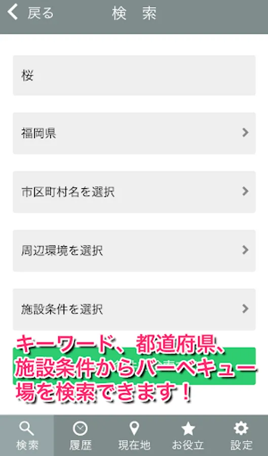 You can also it is possible to look for a simple operation barbecue field of the periphery of the current location, to search keyword, state, from the facility conditions.