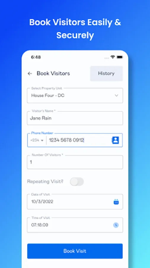 * Visitor Management: Manage entry and exit of visitors and contractors on the estate using an automated workflow.