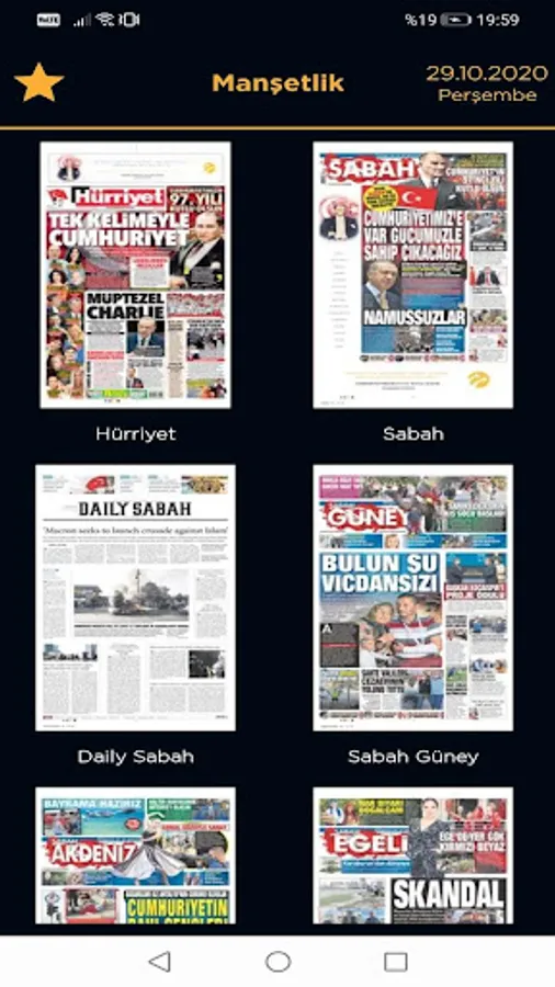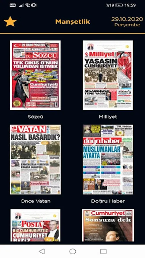 - Headlines section with the headlines of national newspapers published daily in Turkey is an application that can be easily viewed.