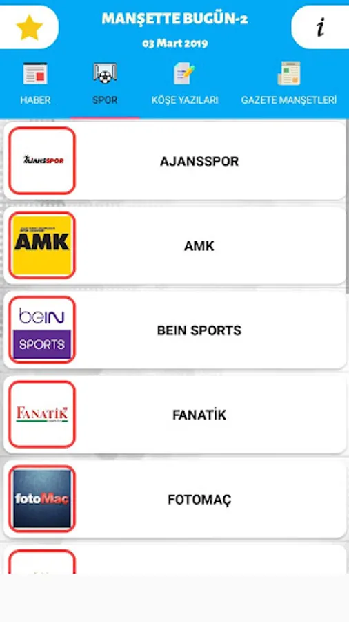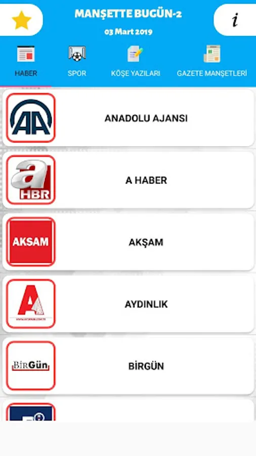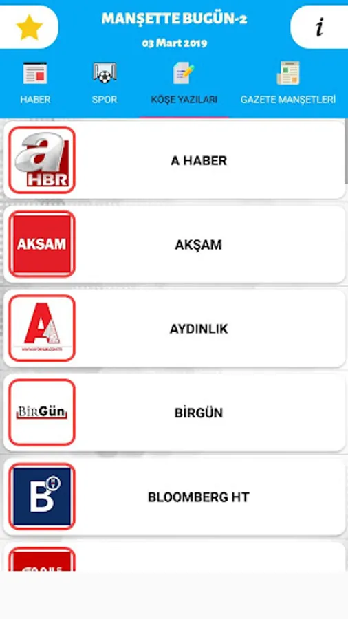 - Headlines section with the headlines of national newspapers published daily in Turkey is an application that can be easily viewed.