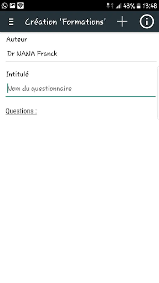 The Questionnaire is a personalized android application, allowing to produce a questionnaire in a few clicks to save time during data processing.