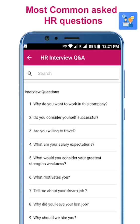 Best App for Interview Questions and Answer to power up your HR skills. It have vast collection of question to practice upon with answer and explanation.