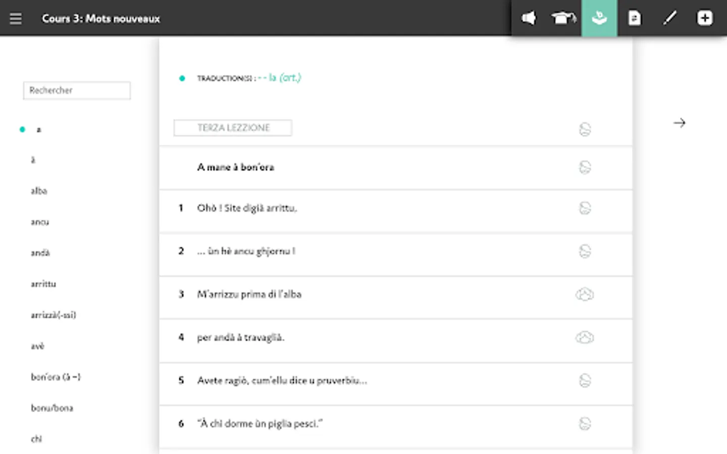 - 100 lessons and corresponding audio (3h30 of audio) recorded by native speakers