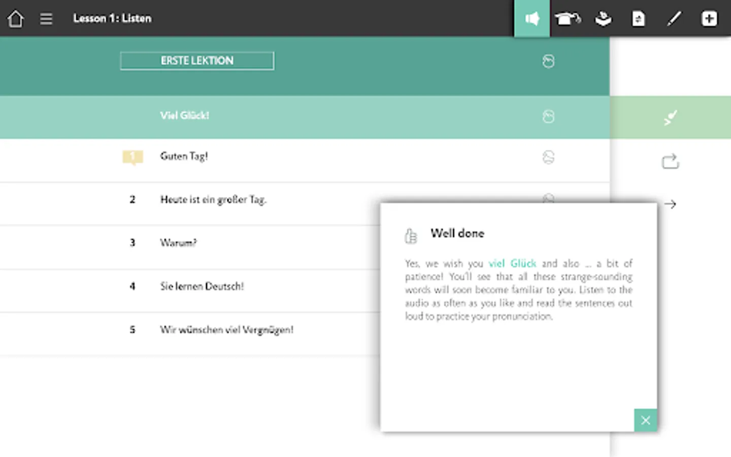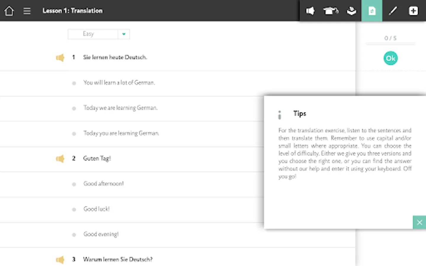 - 110 lessons and corresponding audio (2h40 of audio) recorded by native speakers