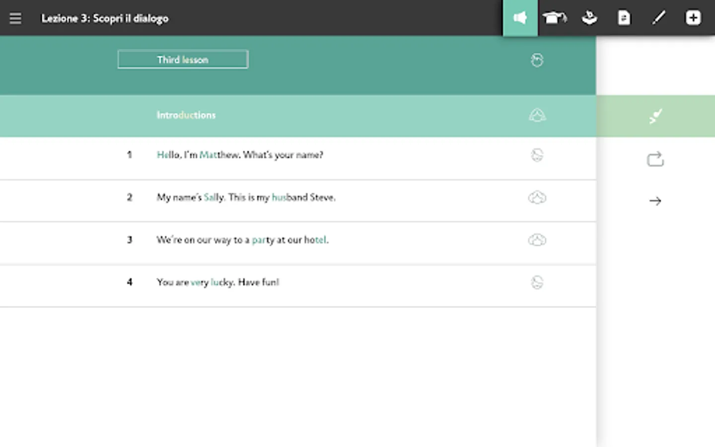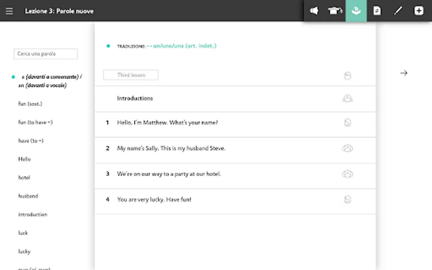 - 110 lessons and corresponding audio (2h40 of audio) recorded by native speakers