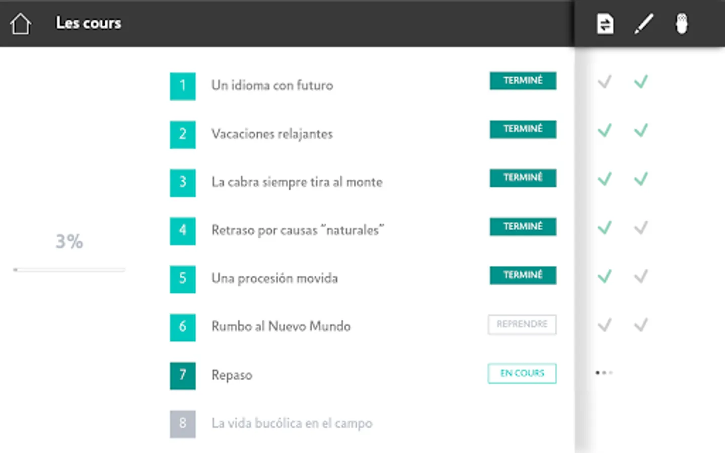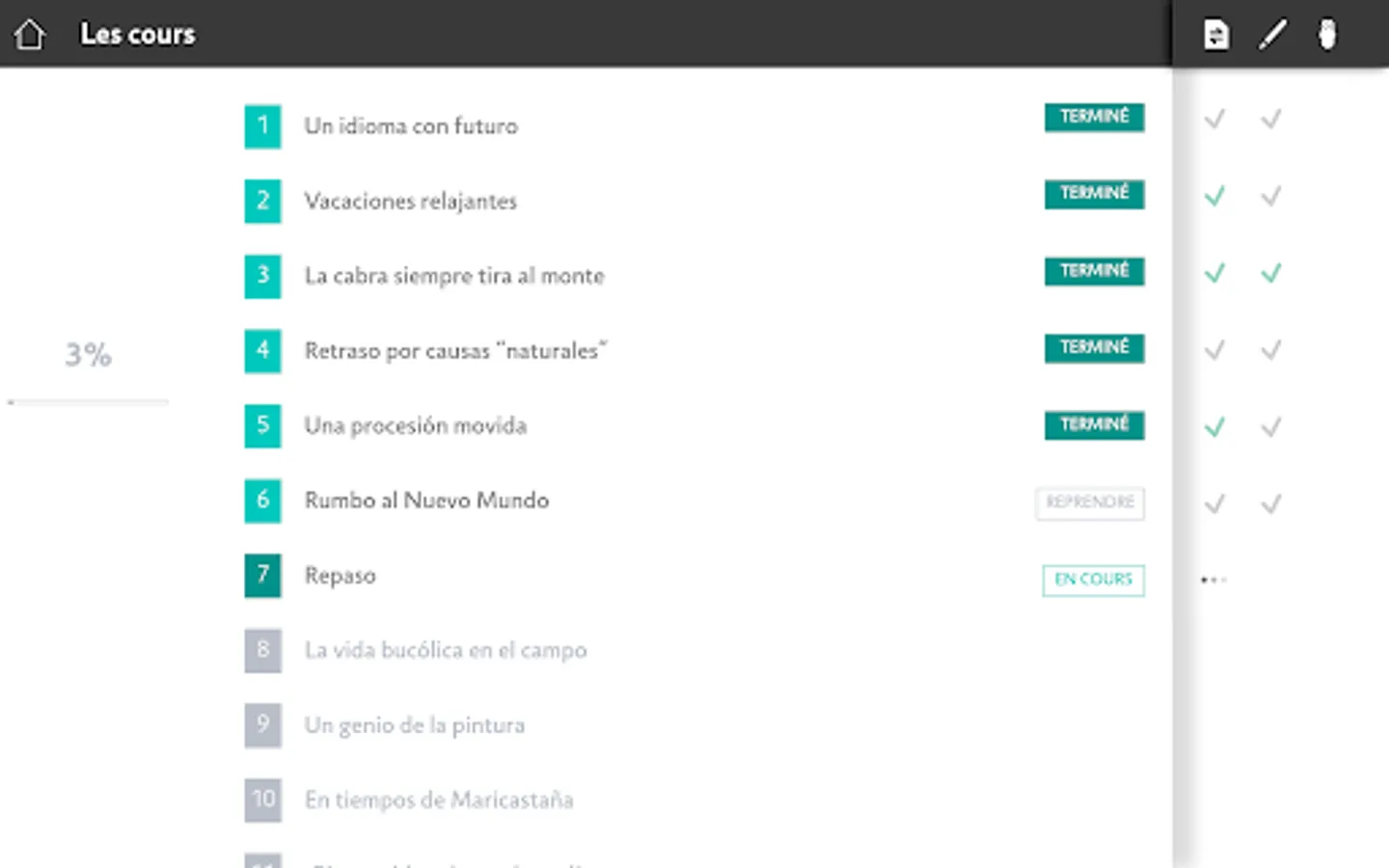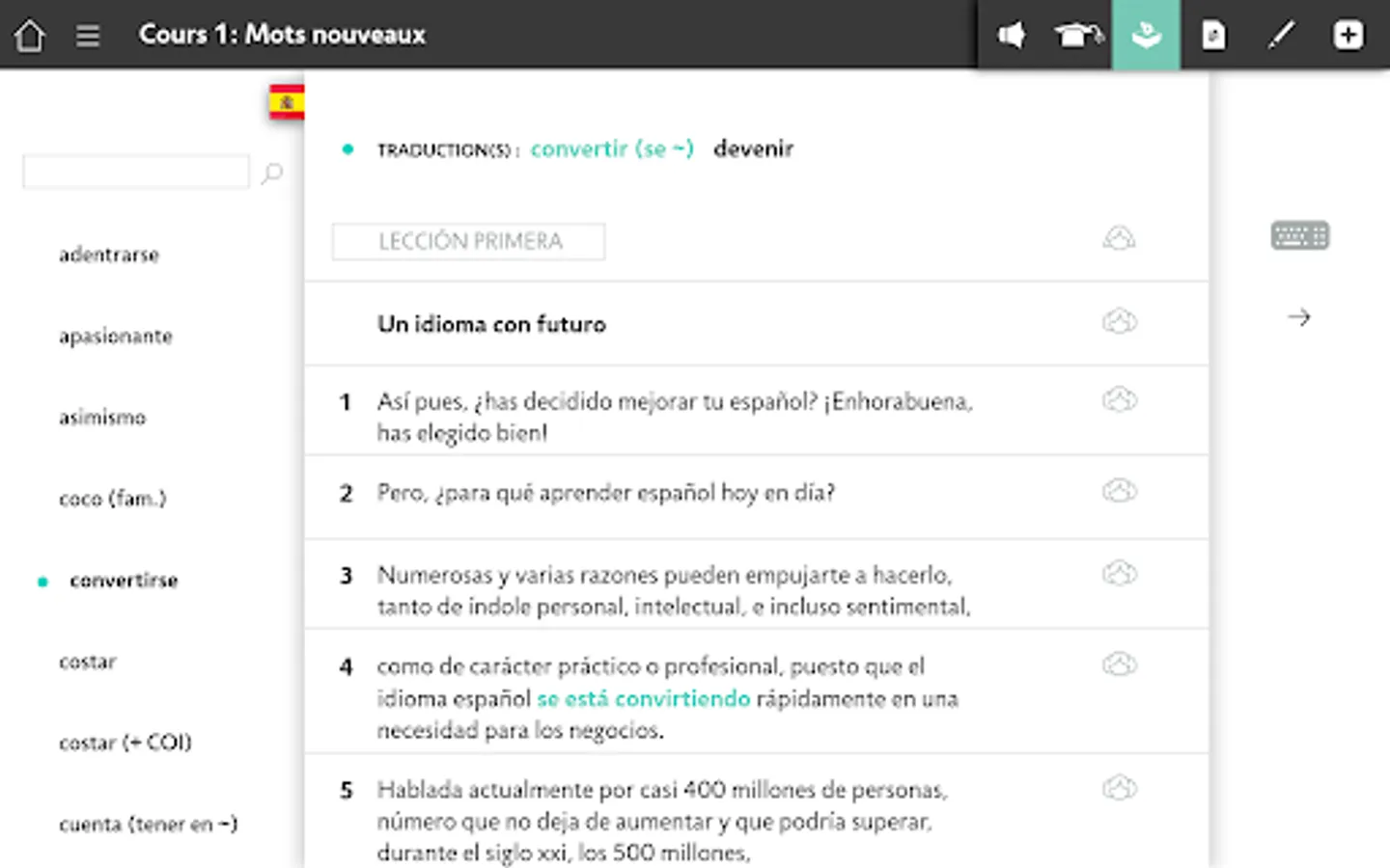 - 70 lessons and corresponding audio (3h40 of audio) recorded by native speakers