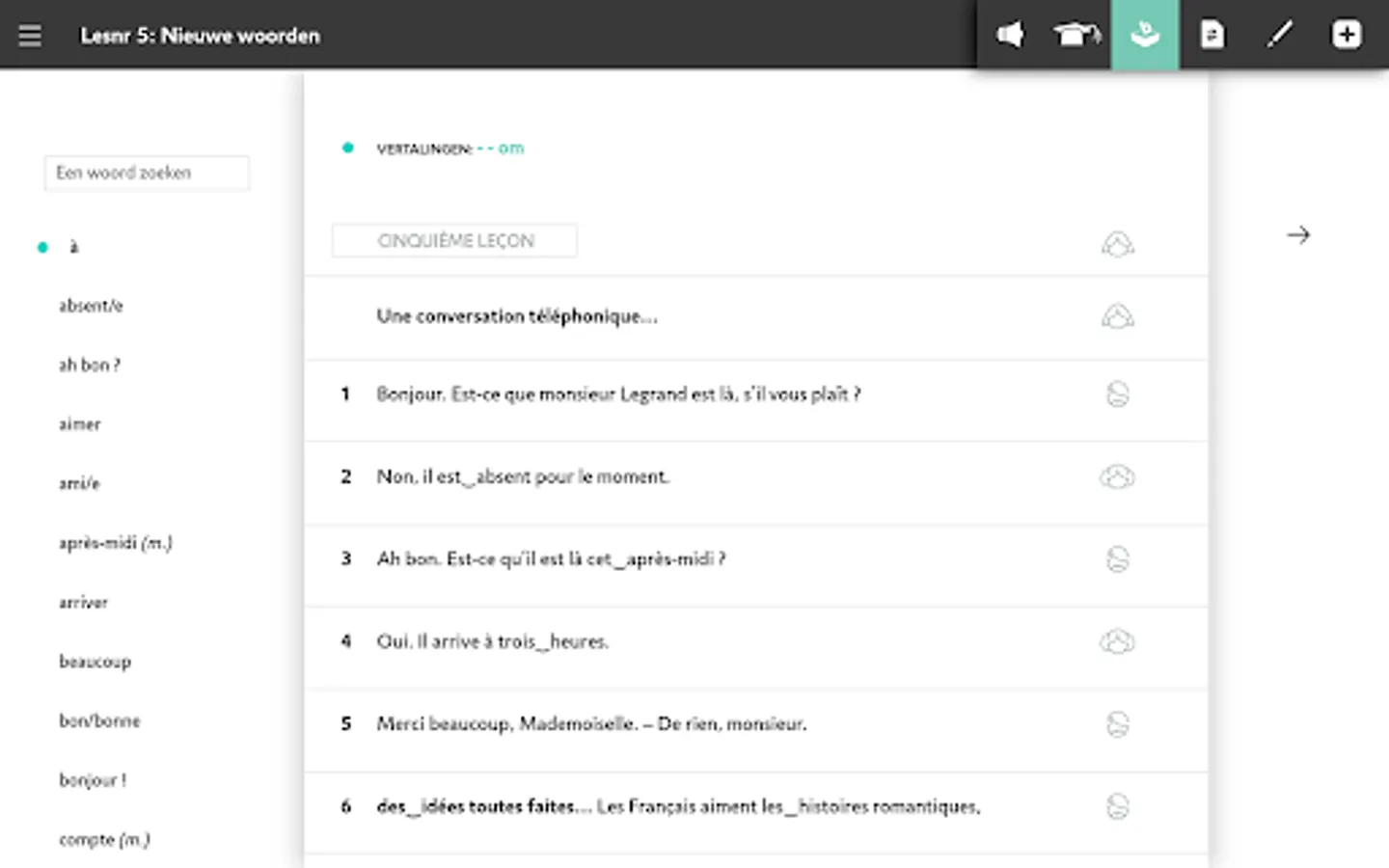 - 110 lessons and corresponding audio (2h40 of audio) recorded by native speakers