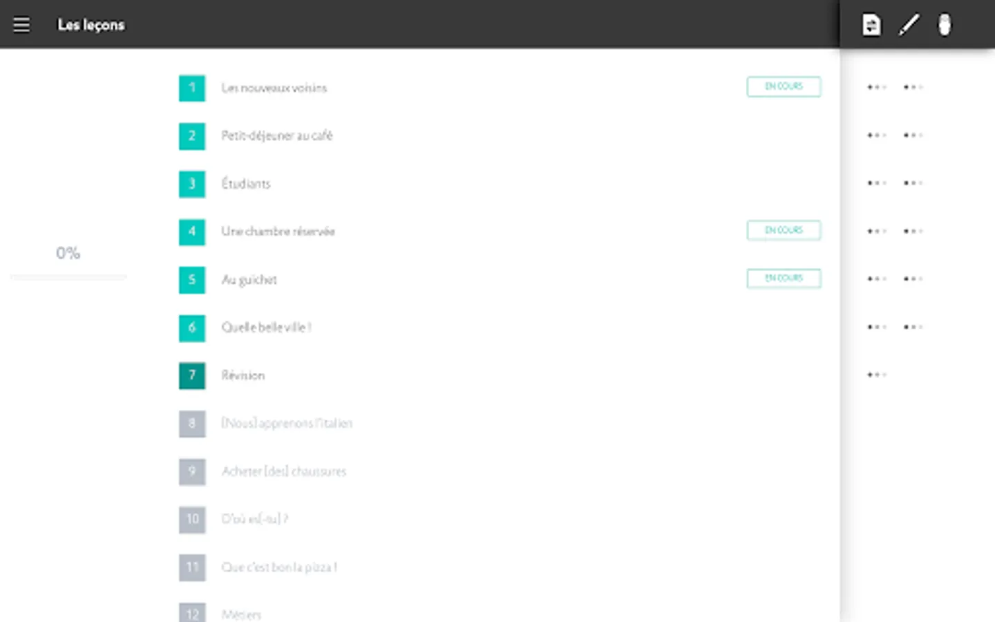 - 110 lessons and corresponding audio (2h40 of audio) recorded by native speakers