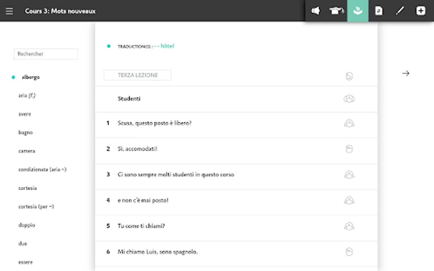- 100 lessons and corresponding audio (2h40 of audio) recorded by native speakers
