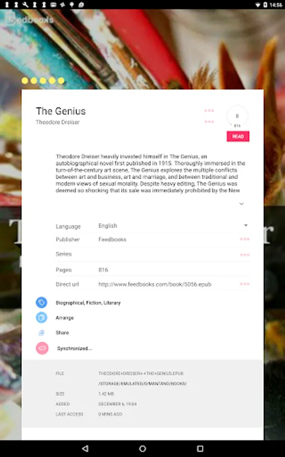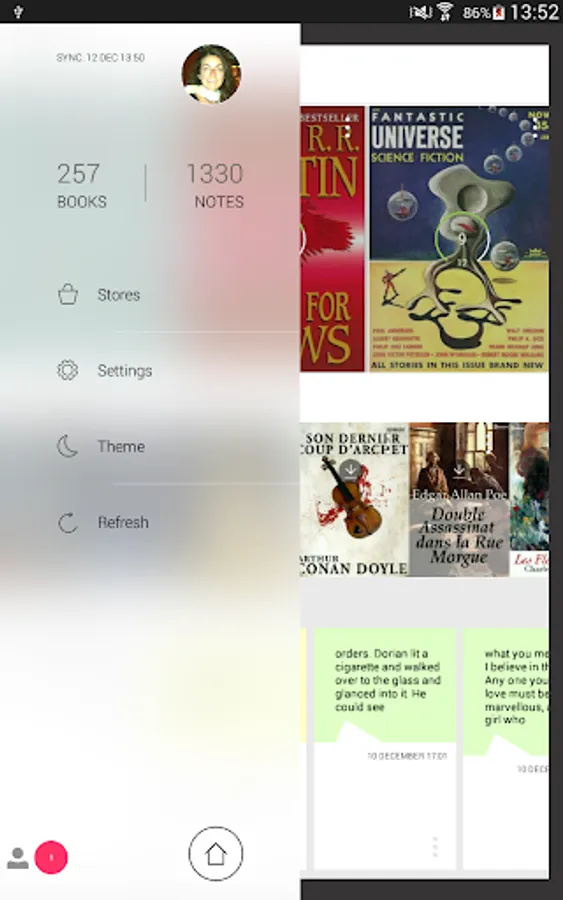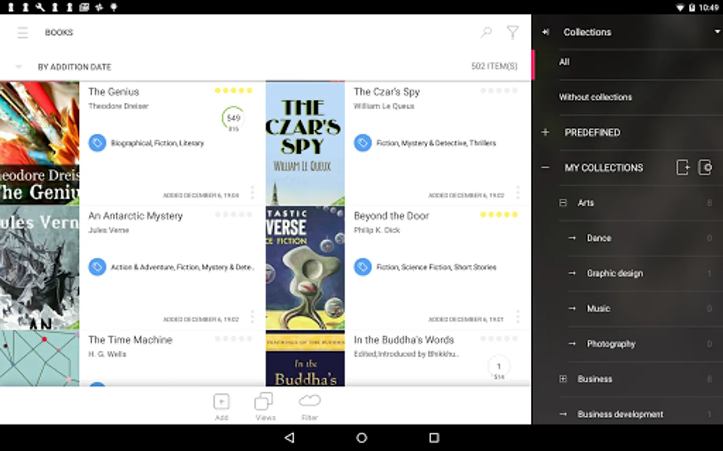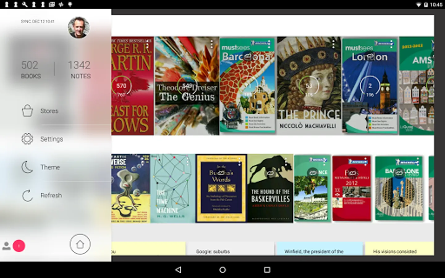 - Synchronized bookshelves: Switch between your phone and tablet and always find your books, reading positions, collections, tags, ratings, bookmarks, in their most recent state.