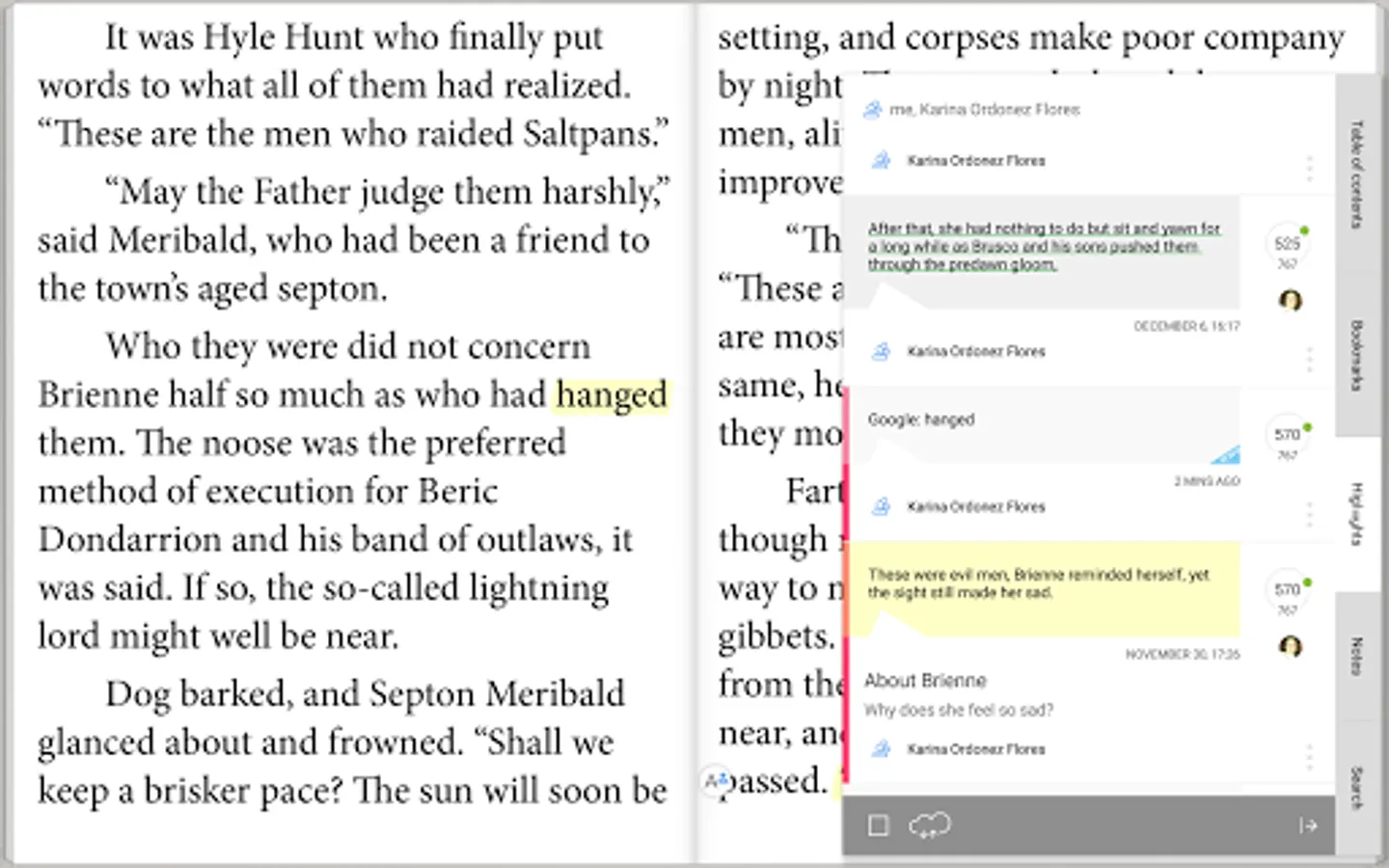 - Bookmark pages, highlight or underline text, add notes to a page or to a selected text