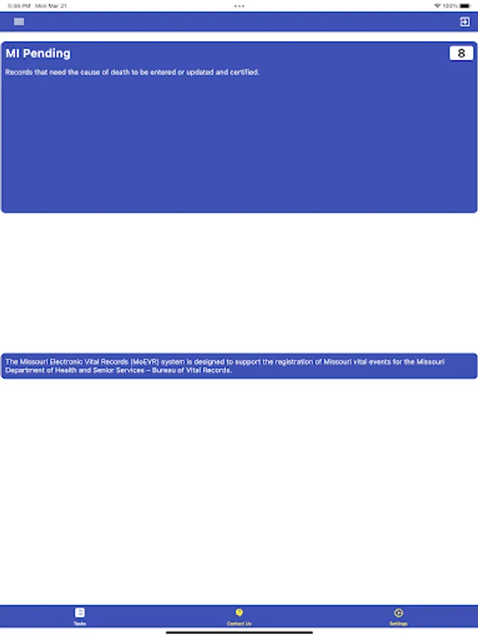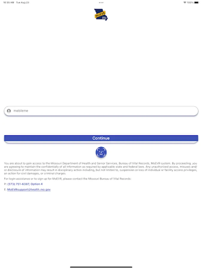 The Missouri Electronic Vital Records (MoEVR) system is designed to support the registration of Missouri vital events for the Missouri Department of Health and Senior Services – Bureau of Vital Records. This mobile version of the system is for professional use only by medical certifiers completing cause of death information. This system may be used only for the purpose for which it is provided. Any attempt to file fraudulent certificates is punishable in accordance with Missouri statutes.