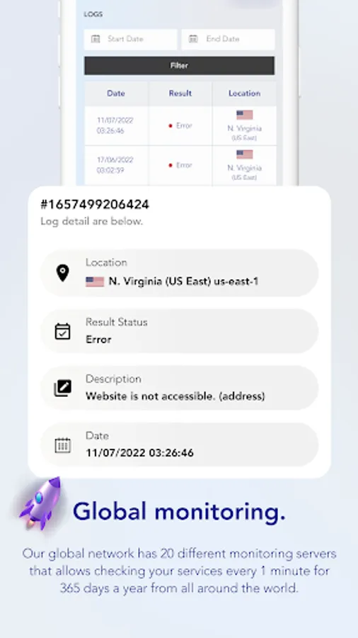 Monitor your services from 20 different locations around the world. We will notify you before your customers when your services break. Sit back and relax. Focus on your business. Let us worry about your services uptime.