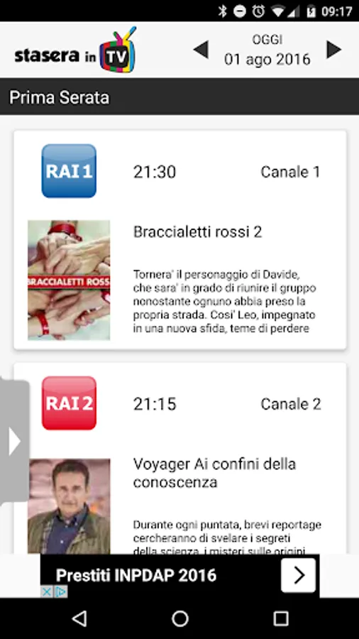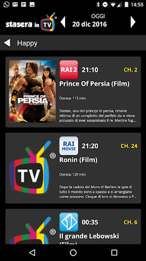 Tonight on TV! TV Guide and easily with the plots of the films and program details. Choose what to see tonight in TV from the comfort of your couch with the "On Air". Order your favorite channels by dragging and placing them in first position!