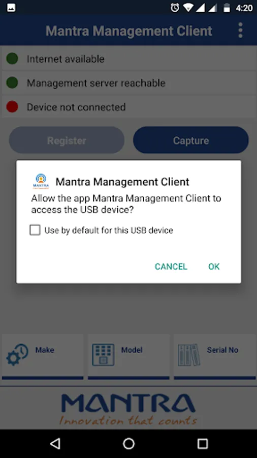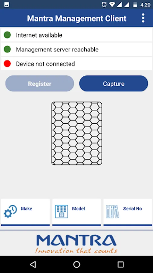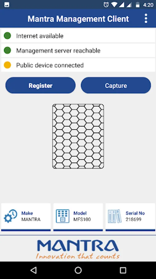This application can be used along with Mantra RD service that you can found on play store.