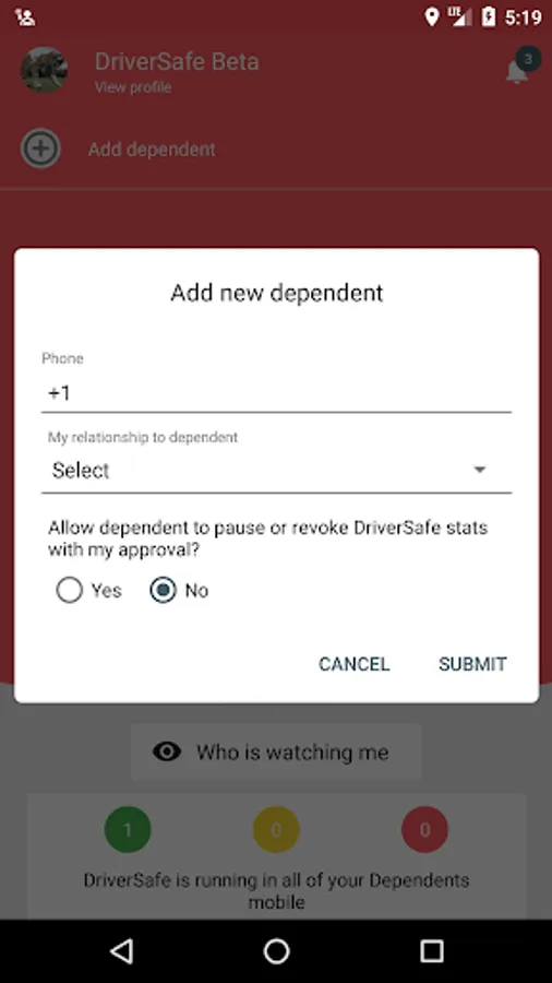 - Monitor dependent's phone usage pattern in a moving vehicle