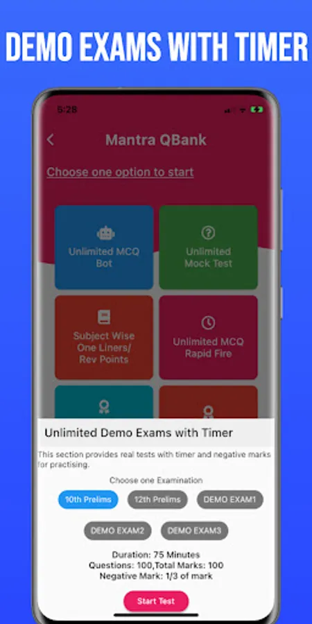 ◼️Demo tests with timer and negative marks.
