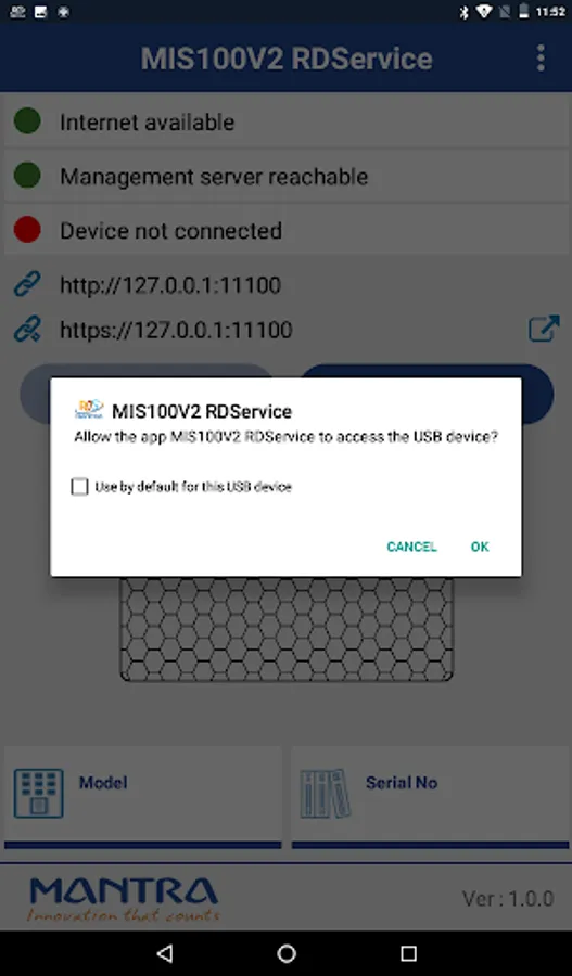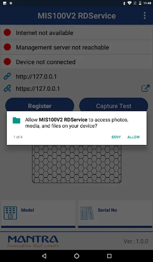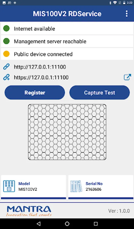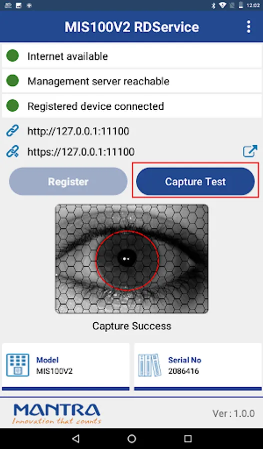 User can integrate this RD service with their application to work with MIS100V2 as a registered device.