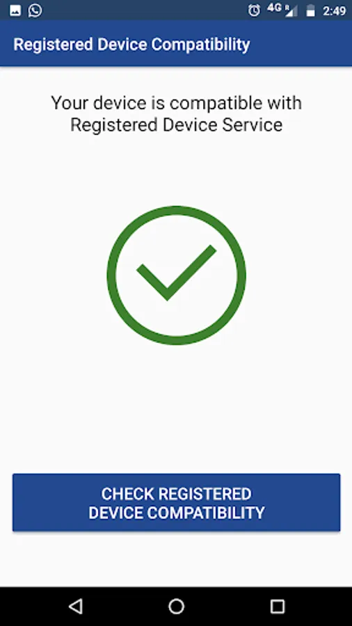 By using this app, user can check their android handset whether it is compatible to work with UIDAI Registered Device Service provided by different-different bio-metric vendors in India such as Mantra Softech India Pvt Ltd.