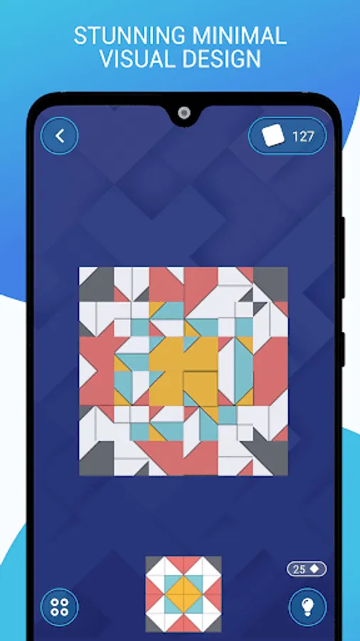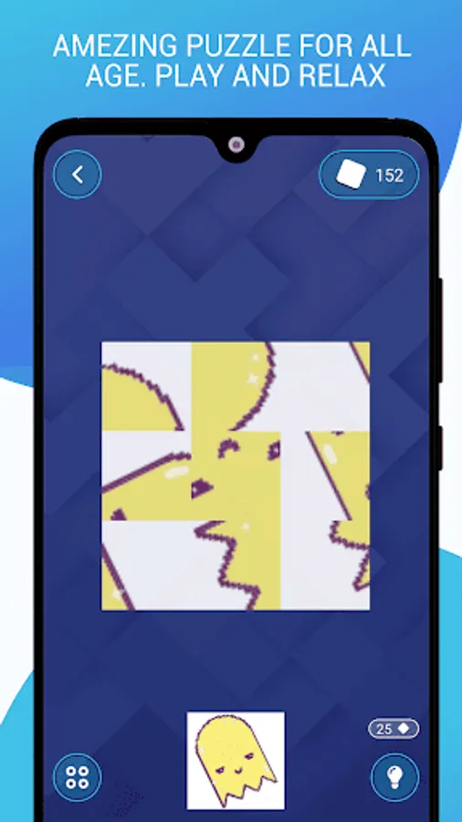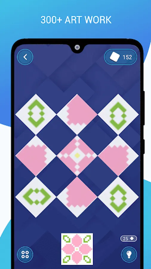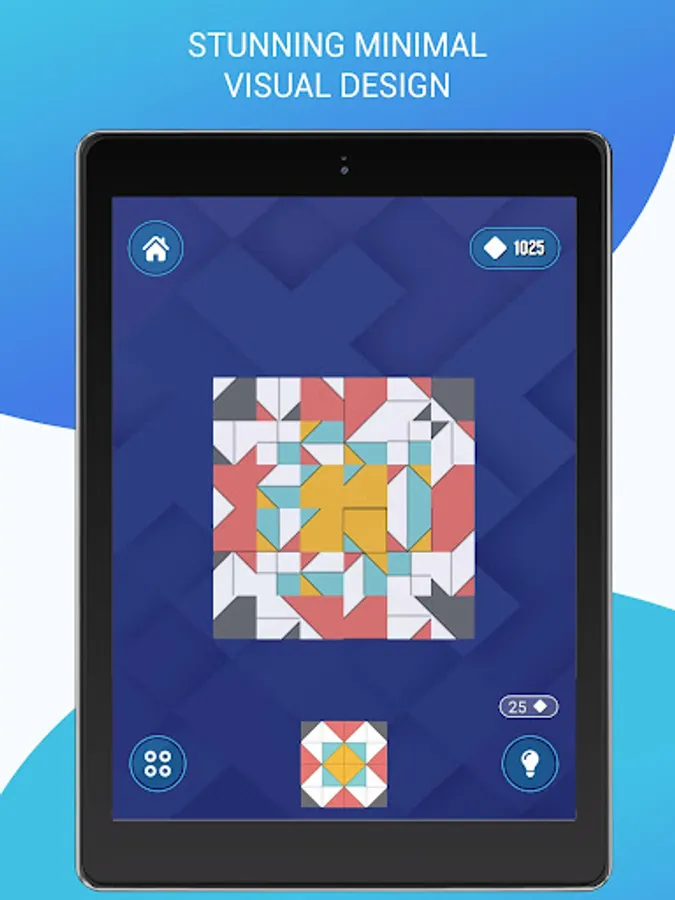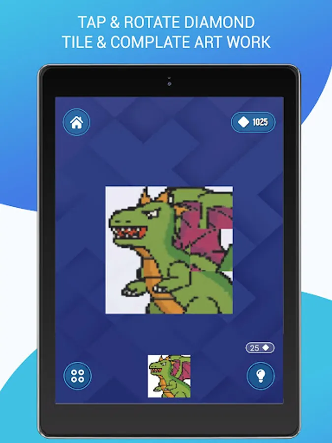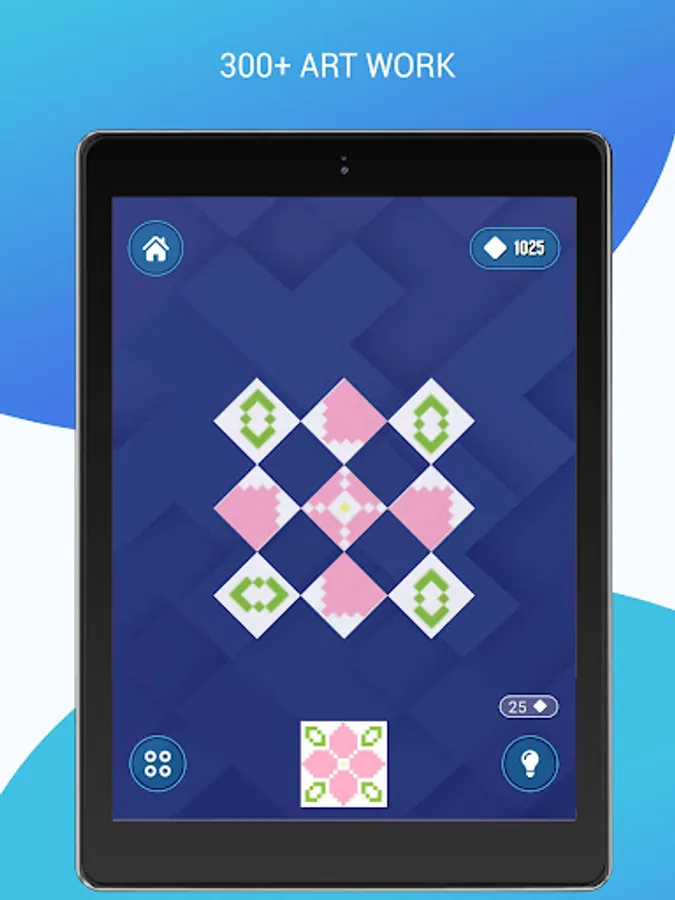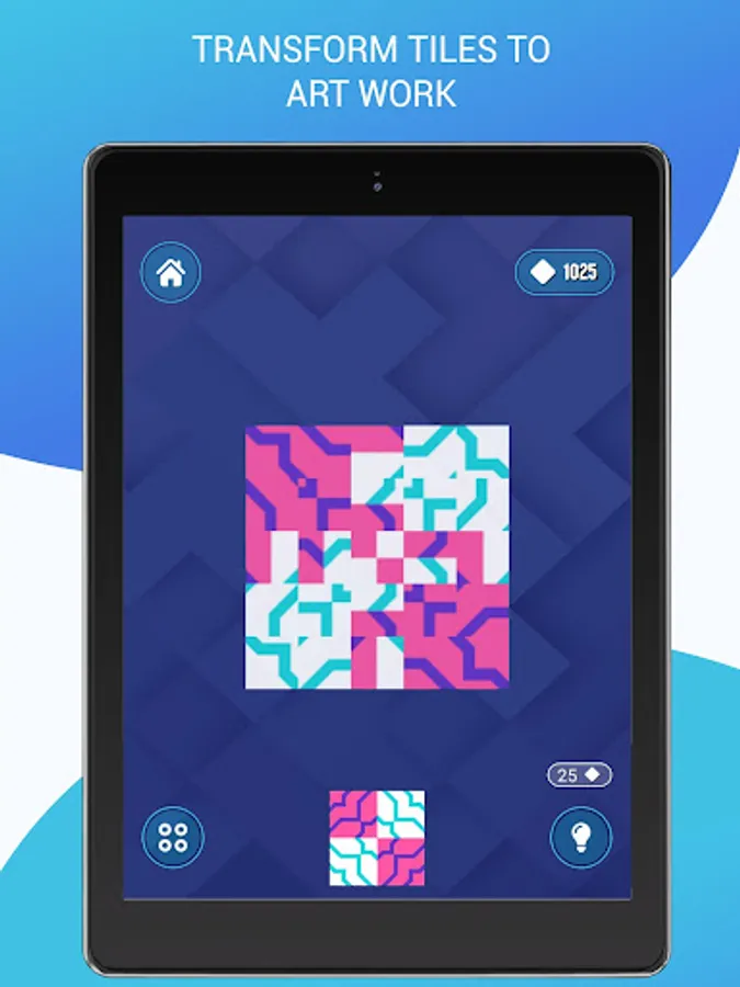 Game aim is to rotate tiles and make given artwork. Tap the diamond-shaped pieces to rotate them individually on its own axis, make correct position and transform pieces into the artwork with one final twist.