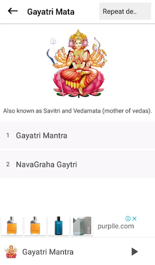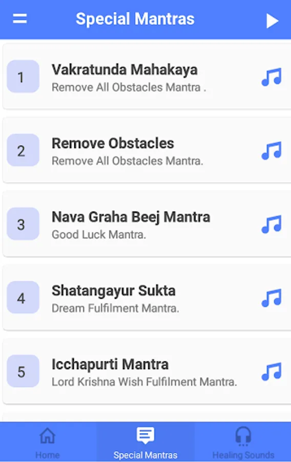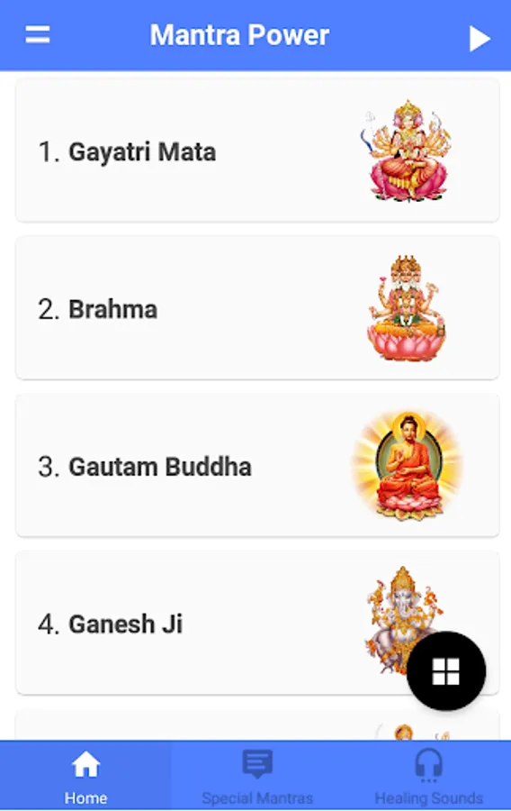Power of Mantra and Music. This app contains a list of Hindu Gods and Goddess and their chanting mantras. These are very powerful, valuable and useful for the prosperity, health, and well-being of human beings.